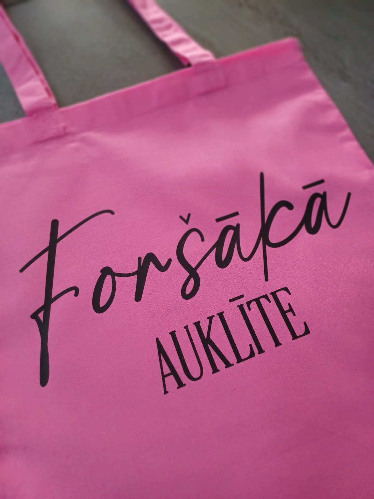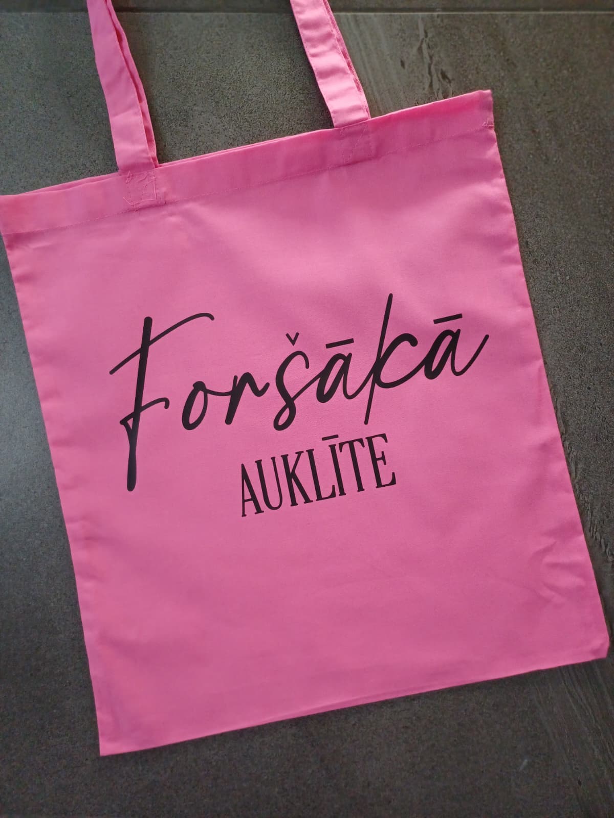 Auduma soma ar apdruku “Foršāka auklīte”. Praktiska soma ar noturīgu druku ikdienas lietošanai.